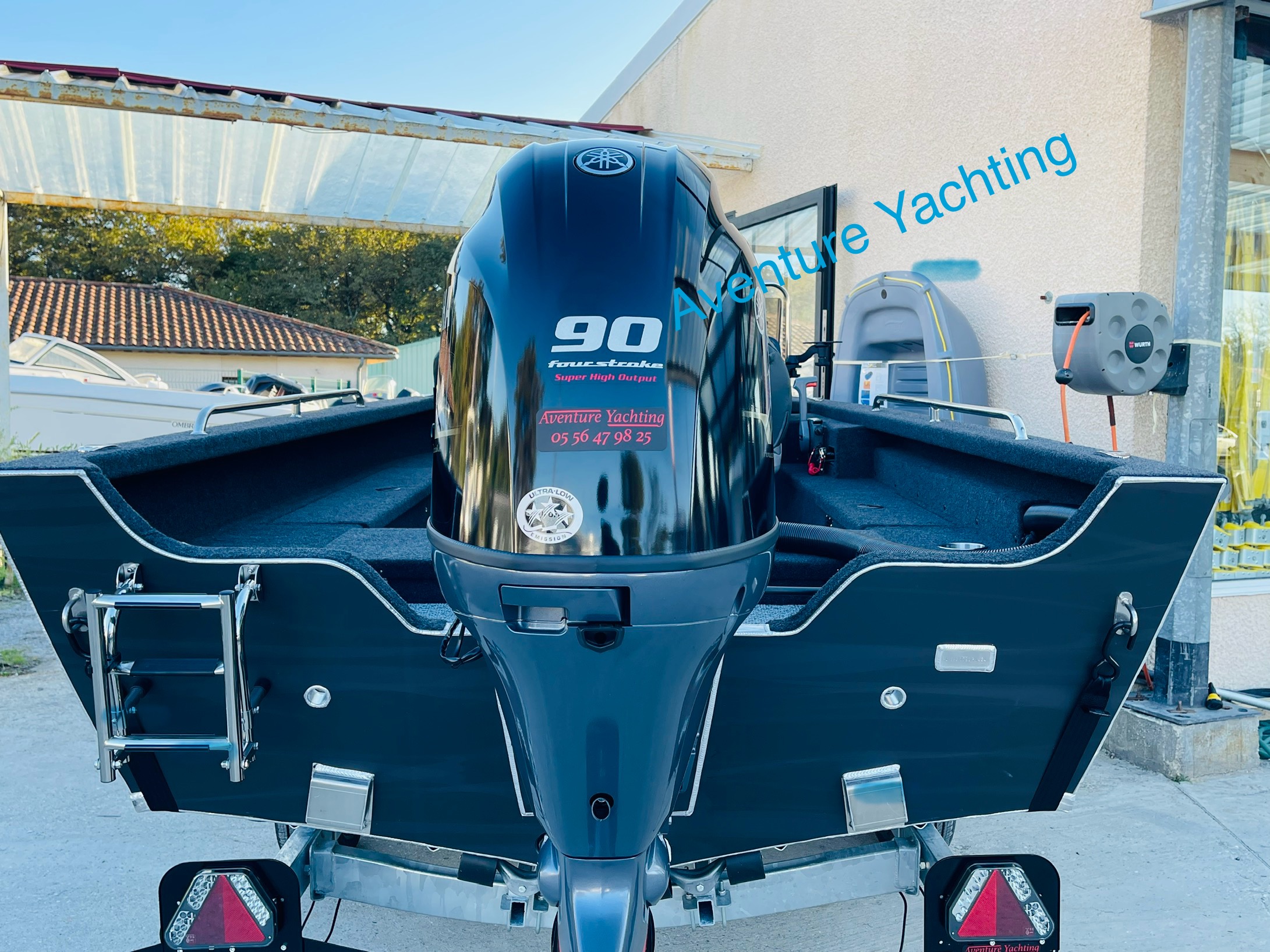 Bateau, Console, Vivier, moteur, remorque et montage :