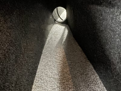 les cotés intérieurs ainsi que sur les coffres et ponts, vinyle sur plancher, moquette anti accroche, nombreuses gaines de passage de